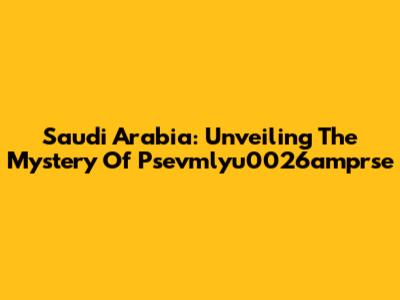 Saudi Arabia: Unveiling The Mystery Of Psevmlyu0026amprse