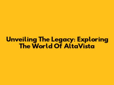 Unveiling The Legacy: Exploring The World Of AltaVista